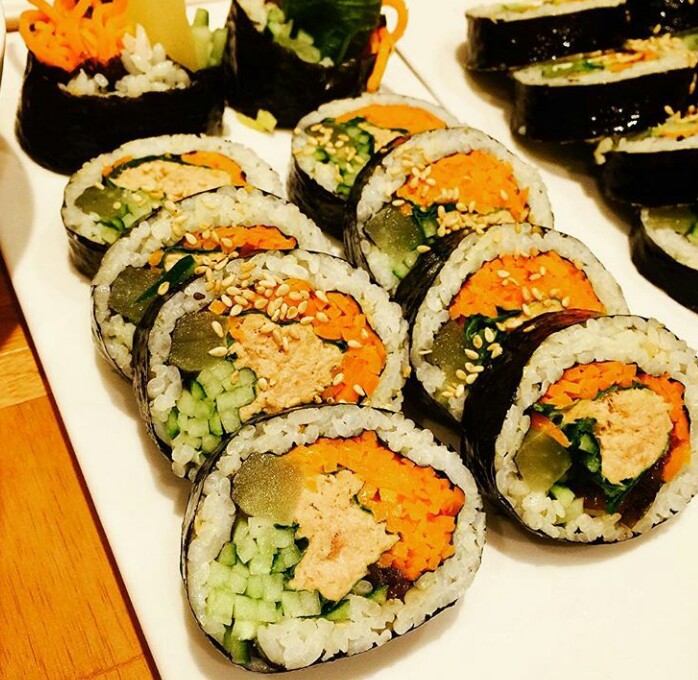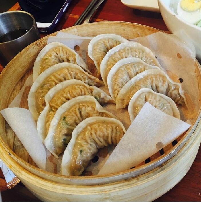 ここはキンパのお店なんですけど、番組では三つ子ちゃんがカルビマンドゥを食べてました!!なのでカルビマンドゥを注文しました!あとはやっぱりメインのキンパも!!チャムチキンパとクリームチーズキンパにしました。キンパは他のキンパのお店よりも少し高めですが、具がたくさん入ってます。