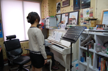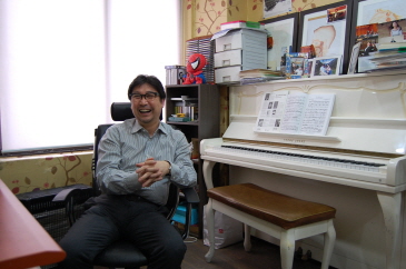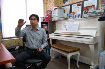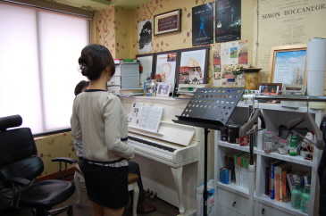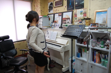 階段で3階へあがるとそこにはこじんまりしたレッスン場が。先生は「ここは大きな施設があったり、建物が新しいわけではないけれど経験を積んだいい講師が揃っています」と自慢します。けして派手な外観ではないけれど、今も実際にプロの歌手として活動する先生は実力がありながらもけしてそれをひけらかす事なく生徒に親身になってわかりやすく、そして楽しくレッスンをしてくれます。