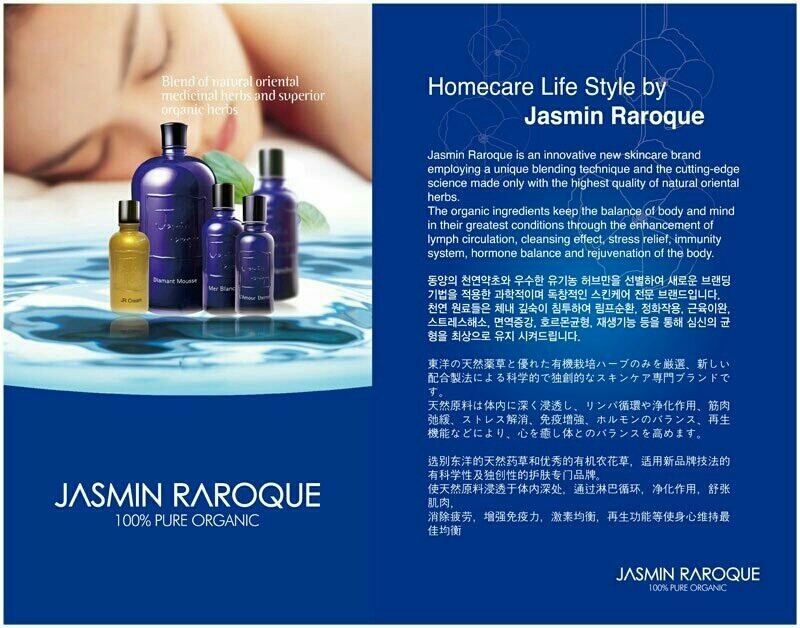 ![]() ![]() ![]() ![]() ![]() ![]() ![]() ![]() 顧客に「美しく健康な人生の幸福を届けること」を目的とし、韓国で自生する天然植物とヨーロッパの有機農法ハーブを使用した100%オーガニック化粧品「JASMIN RAROQUE(ジャスミン・ラルク)」を使用する、韓国発の高級スパ「JRスパ」。「JASMIN RAROQUE(ジャスミン・ラルク)」は、東洋の厳選された「天然薬草」と優れた「有機農ハーブ」のみを厳選し使用されています。天然原料は体内に深く浸透し、リンパ循環や浄化作用,ストレス解消,免疫増強,ホルモンのバランス,再生機能などにより心を癒し、体とのバランスを整えます。 |