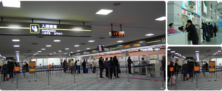 入国審査場では旅券、出入国記録カード(E/Dカード)を提出。本人確認が行われ、旅券に入国スタンプが押印。