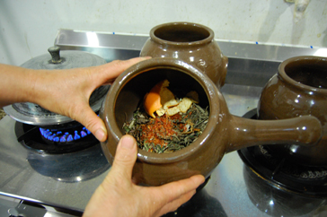 汗蒸幕とは遠赤外線を放出する石と黄土で作ったドーム内を松の木を焚いて温度を高め高熱物理治療を向かいます行うものです。表面的に発汗を促す一般のサウナに対し汗蒸幕は遠赤外線により体内の老廃物が汗と共に排出され身体の芯から暖め血行を促進新陣代謝を活発にするため。健康回復はもちろん婦人病の予防や美しい若い肌へと導く効果があります。