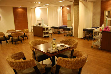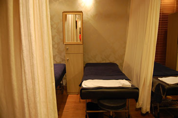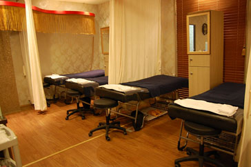 次はいよいよ、エステルームへ移動しエステを受けます!エステルームは、広々としたゆとりのある空間で、ベッドも多く用意され、団体でも同時に施術できるようになっています。なんと、最大で300名が同時にマッサージを受けることができるそうです。エステルームでは、アクセサリー類を全て外し、上半身のみ専用のガウンに着替えます。マッサージ中は、肩までタオルケットのようなものをかけてもらえますが、スタッフに言えば、ベッド自体を温めてもらうことができます^^