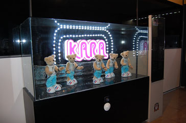 スキンアニバーサリー・ビューティタウンには、お子様も楽しめるテディベアギャラリーが用意されています。テディベアギャラリーでは、韓国人気K-POPスターや、人気のドラマの主人公に扮した可愛いテディベアたちが、展示されています。日本でも人気のKARA、ビッグバン、少女時代に、ドラマコーナーには「冬のソナタ」、「フルハウス」などが展示されていましたよ!^^メインの広いスペースには、写真撮影にピッタリの、ベンチや、顔の部分がくりぬかれた写真撮影用の看板などが用意されていました。