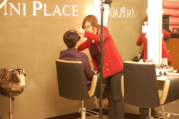 まずは、ベース作りから!肌の色に合わせて、BBクリームとパウダーでベースを作っていきます!!ベースが出来ると、目元にアイシャドー、アイラインを入れていきます、アイラインは、目じり、目の下までしっかりと引き、私も韓国で人気のスモーキーメイクに初挑戦です!!まつげは、付けまつげを使ってボリュームアップ!目元がとっても華やかになりました!眉を整えたあとは、何種類ものリップ、グロスを重ね、艶やかな唇を演出!軽くほほの高い位置にチークを入れて完成!!鏡に映った自分をみてびっくり!別人になったような気がしました^^普段のメイクとは違う完成度の高いプロのメイクで、韓流スターになったような気分が味わえました!★なんと2013年4月からはご自分でメイクアップすることになりました。