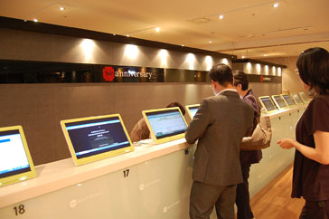 スキンアニバーサリー・ビューティタウンの入口を入ると、直ぐ目の前にインフォメーションがあります。まずは、こちらのインフォメーションで事前に予約した内容が入力された個人カードを発券します。このカードは、エステを行うときなどに必要となるので、無くさないように気をつけましょう^^
