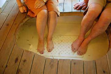 着替えが済むと、さっそく足湯を行います。程よい湯加減で、足元から体全体がぽかぽかと温まります^^また足湯を行っている間に、うれしいお茶のサービスがありました。温かいトウモロコシ茶を頂きながら、足湯を存分に楽しみます。足湯&とうもろこし茶でとってもリラックスした気分になりました☆