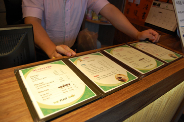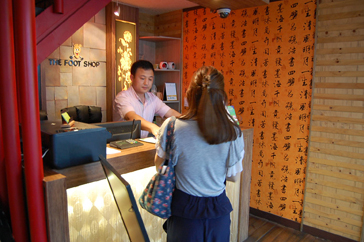 THE FOOT SHOP鐘路(チョンノ)店の店舗は2階にあります。2階の入口から入ると左手に受付けがあり、こちらの受付けでメニューを見ながら、まずは今日施術するマッサージのコースを指定します。今回ソウルトモ取材班は、伝統足管理(40分コース)と、背中集中管理(40分コース)を体験することにしました。