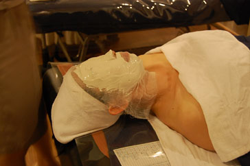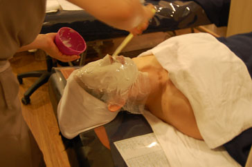 クレンジングでお顔の汚れを落とした後は、失われた水分の補充と、お肌を沈静させるために水分と栄養分をたっぷり含んだパックをします。水分パックは、ひんやりとしていてとっても気持ち良かったです。また、にきび肌の方には、アクネ専用パックが行われます。