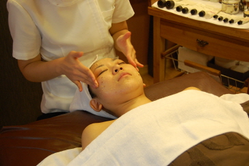 次は、珍しい数種類の穀物を使ったピーリングが行われます。古くなった肌の角質や、毛穴に詰まった汚れをしっかりと除去していきます。穀物の独特の香りがしますが、自然のものを使ってエステが行われていることが実感できます。