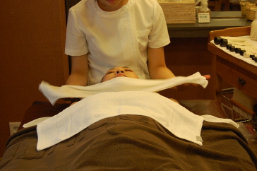 次は、ディープクレンジングが行われます。日頃のメイクなどで詰まった毛穴の汚れなどをしっかりと落としていきます。スキンケアの基本は、クレンジングからと言われますが、いくら良いスキンケア商品を使っていても、クレンジングがきちんと出来ていなければ意味がありません。汚れを落とすことが重要だそうです^^また、ふき取りの際に使われるタオルからもアロマの香りが漂い、とってもリラックスした気持ちになれましたよ☆タオルなどにも、アロマ製品が使われており、ほのかなアロマの香りでリラックス効果が期待できます。こういった細かな配慮が嬉しいですね。
