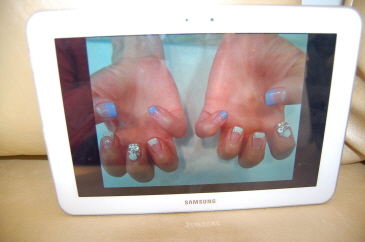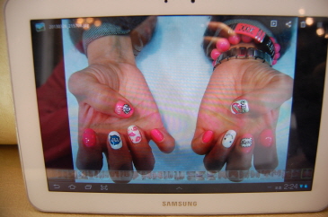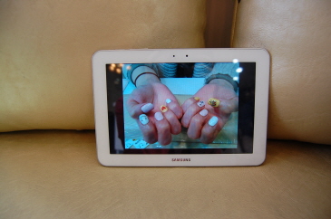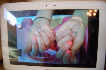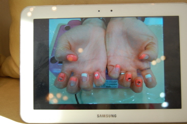 さすがはIT先進国、ネイルのカラーやデザインはサムスンのノートパッドで選びます。