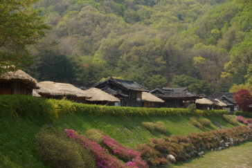 PHOTOギャラリー紹介文 : 世界遺産に登録されている洪陵は朝鮮第26代の高宗王子と明成皇后閔氏の合葬陵。南楊州市の金谷銅に位置し、史跡第207号に指定されています。洪陵の陵堤は明の孝陵をモデルに作られた皇帝陵で、従来に比べ非常に特異なつくりをなしています。従来の丁字閣の代わりに寝殿が立てられており、その横には文人石と武人石が置かれ、さらに紅箭門に至るまでの道にキリンや像、ヘテ(中国・韓国の想像上の動物)、らくだ、馬などの石像が順に並んでいます。金冠が被された洪陵の文人石の高さは3.85mにも達し、歴代の王陵の文人石の中でもこれは最大級。丘をはさんで向こう側の朝鮮王朝最後の王陵、裕陵も巡ります。ここには第27代王の純宗皇帝と純明皇后閔氏、そして継后の純貞皇后尹氏が眠っています。先に訪れる洪陵に比べ石物に施された彫刻がより写実的で個性的であるのが特徴。続いて南揚州総合撮影所へ。この撮影所では映画はもちろん、ビデオ、アニメーション、コマーシャル・フィルムなど、各種映像物の制作機能が整えられている韓国で最大規模の総合映像支援センターで、1994年から現在まで、韓国映画の室内セット場面の約80%がここで撮影されました。特に韓国映画史上、空前のヒットを記録した「共同警備区域JSA」の舞台である板門店を実物のサイズで再現し、観光客から絶大な人気を得ています。お昼は(アヒル肉のかぼちゃ包み料理)へご案内。これは中々日本では食べられない。この後は日本の箱根を思わせる、落ち着いた静かな自然の世界ニ水頭に向かいます。二水頭は金剛山から流れた北漢江と江原道、金岱ボン麓倹龍沼に源を発する南漢江の二つの水が合わさる所であることから二つ水の頭 二水頭(トゥムルモリ)。またの名を両水里といいます。こちらの渡し場が南漢の水路がある江原道旌善郡と忠清北道、丹陽郡、そして水路の終着地であるソウル、纛島と麻浦船着場を繋いた最後の定着地であったために、かつて非常に繁盛しました。また樹齢400年になったケヤキは訪れる人をは必ず記念撮影をするほど地元の人に有名です。ツアーーまだまだ続きます!このあとはチョン・ヤギョン(丁若鏞)遺跡地へ。丁若鏞は正祖の右腕であり、水原華城築造に尽力した挙重機や滑車ろくろを設計します。この時代に、清を通じて西洋の築城法をとりいれたというから驚き。今ではユネスコ世界遺産になった水原華城は丁若鏞なしでは作りえなかったのです。ツアーの最後は洗美苑へ。ここには約50種類の 睡蓮と約60種の水生植物があります。洗美苑という名前は水を見れば心を洗い、花を見れば心を美しく’という (観水洗心、観花美心) 昔の名言のように、洗美院に訪問した人々が心を洗って心を美しくする場所になってほしいという気持ちから名づけられたそうです。春には蓮がいっぱいに広がって、噴水やオブジェがあったりと、これまでのぎゅっと盛りだくさんのツアーをのんびり振り返りながら散策するのにいいスポットです。