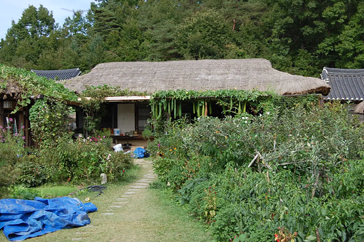 ソウルを出発して2時間くらいたつとどんどん山の中へ。家も少しぽつぽつとしかなく辺りは山と畑とたんぼだけ。そんな田舎道を走っていると突然目の前に橋が!ついに「ソム村(水島里伝統村)」へ到着です!橋を渡っている私たちの目には太陽の光でキラキラと輝く川と私が1番見たかった「一本橋」が!車を降り真っ先に向かいたかったんですが、興奮した気持ちを抑え村を少しだけ見学してみることに。山の上まで続く一本道には昔のままの家々が立ち並んでいて、味噌を作っているところや屋根の上にカボチャを栽培している家もありました。途中で民泊の看板をみつけもう少し登ってみると民泊発見!お部屋も覗かせてもらいました!昔のかまどがそのまま残っていたり、今でも実際に使われている農具などがたくさん置いてあって、その時代の息づかいを感じることができました。お昼すぎに到着した私たちはお腹がすき昼食をとることにしました。ムソム村にはたった1つしか食堂がないということなので、その食堂「コルドンバン」に行って見ました。