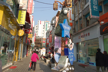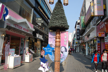 地下鉄3号線東大入口5番出口を出て、新羅ホテル奨忠体育館の前を通りすぎます。まっすぐ行くと横断歩道のある十字路があるので、斜め右の通りを行きます。