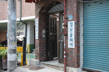 地下鉄3号線景福宮駅3番出口からDunkinDounutsを右に見ながら直進した所に位置するバス停から、緑色のバス1020・1711のバスに乗りロッテアパート前で下車します。バスを降りて、向かい側に位置する教会横の坂道を上っていきます。