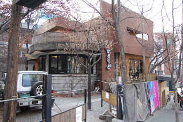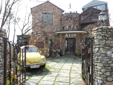 地下鉄3号線景福宮駅3番出口からDunkinDounutsを右に見ながら直進した所に位置するバス停まで行き、緑色のバス1020・1711のバスに乗り、ロッテアパート前で下車します。バス停から向かい側に位置する教会横の坂道を上っていきます。