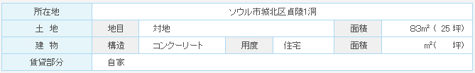 | 家賃相場 | 45万ウォン~55万ウォン(冷房・オンドル代を別途とる所もある) |