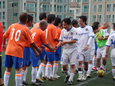 韓国人会社員とのサッカー交流を通じてお互いの日本の会社員との交流を活発にさせる。