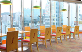エレベーターで5階まで上がり、目の前にある階段で6階まで上がると、ホールに到着!ロビーからは南山タワーが望めます。
