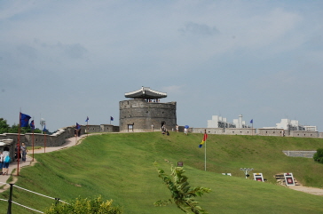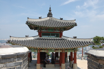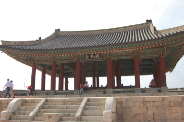 王室の威厳を象徴するため2層の樓閣となっていて、城門を保護するためにレンガで 甕城が造られている。さらに、敵が甕城門を焼こうとした時のために、甕城上部には5星池という5つの穴が開けてあり、水がかかるようなっている。