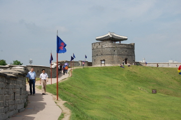当時最高の実学【現実生活に役立つ実用的な学問】者たちが集まり、東洋と西洋の軍事施設理論を盛り込んで科学的に設計された韓国初のレンガで造られた近代的な城であり、全長5.7kmという‘万里の長城’のような巨大な城郭とその要所要所に門、砲台、やぐら、兵士の休憩所や軍事指揮所、訓練所などが東西南北に整然と組み込まれている。10年はかかると見られていたこの巨大な計画都市をわずか3年足らずで築き上げた影には、丁若鏞(チョン・ヤギョン)をはじめとする実学者たちの存在が大きな力になったといえる。当時の工事記録も完全な形で現存しており、建築史的にも高い価値を有する城郭として、1997年にはユネスコ世界文化遺産に登録された。