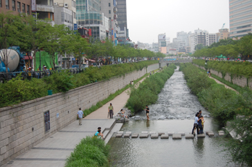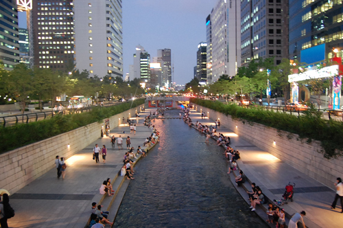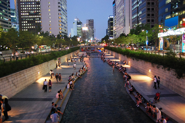 1958年からアスファルトに覆われ、道路として利用されていたが、その清渓川高架道路が築30年を経て老朽化し、そのままでは危険な状態となったため、2003年7月から始まった2年3カ月に及ぶ復元工事の後、清渓川は都市の生態河川として新しく生まれ変わり、世界のマスコミから絶賛された。