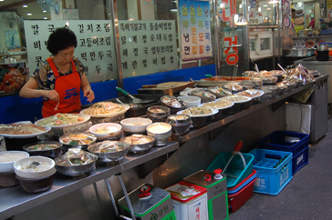 多少の日本語が通じるお店もあるが、基本的には韓国の地元の雰囲気をディープに感じられるような庶民的な食堂であり、市場という場所がらゆっくり食事を楽しめるところではないが、日本では味わうことの出来ない本場の味を是非味わっていただきたい!