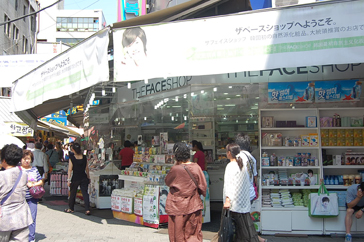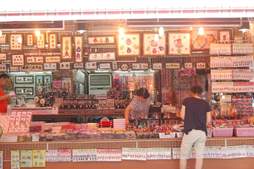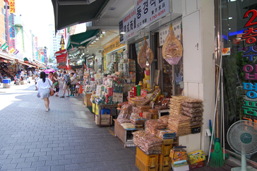 D棟を出てすぐ目の前に並ぶ韓国のりやお土産用のお菓子を扱った食品店では、どこも韓国のりの試食を誘い文句に勧誘してくるので、まずは色々と試食してみるのがオススメ。まとめて買うとかなり安くしてくれたり、色々おまけをくれたりと、かなりお得な気分!