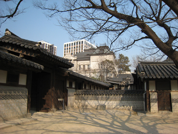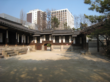 雲峴宮正門に入ると、右側に長く建った守直舎という瓦屋があり、これは宮の管理と警備、雑用の担当者たちが主に住んでいたところ。守直舎を過ぎると大門があり、 興宣大院君が国政を司ったという老安堂があり、老安堂はアンチェ(母屋)、二老堂は離れとして使われた。その規模や格式、平面の形からみると士大夫(サデブ)の家というよりは宮殿の内殿に近い。そして、老安堂を過ぎると還暦や宴などの各種家内行事が行われた老楽堂がある。