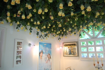 弘大の街で、ひときわ目をひく白い洋館“Four Seasons House(フォーシーズンズハウス)”、1階はカフェと展示室、2階は事務所となっているほか、室外には『夏の香り』で登場した、黄色いバラが美しいプロポーズの部屋、『春のワルツ』で御馴染みのピンクトラックが展示されている。地下には『春のワルツ』のウニョンの部屋をはじめ、『冬のソナタ』を撮影した当時、使われた衣装や小道具、さらには台本まで展示されておりドラマファンを喜ばせている。