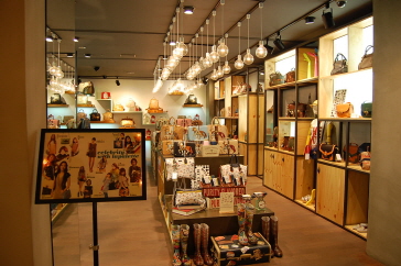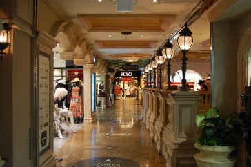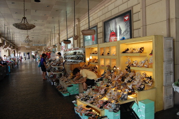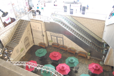 本当の空のように天井が朝、昼、夕焼けの風景に変わって屋内に居ながら外の躍動感ある街を歩いているようにデザインされている。このスカイアベニューでは主に登山用品を取り扱っている。(地上1階)