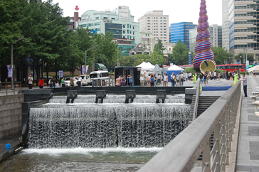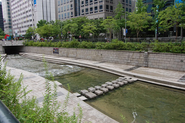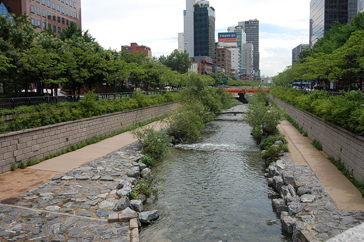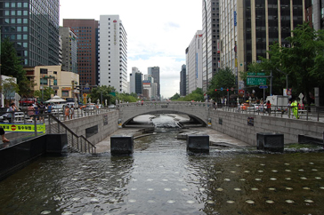 1958年からアスファルトに覆われ、道路として利用されていたが、その清渓川高架道路が築30年を経て老朽化し、そのままでは危険な状態となったため、2003年7月から始まった2年3カ月に及ぶ復元工事の後、清渓川は都市の生態河川として新しく生まれ変わり、世界のマスコミから絶賛された。