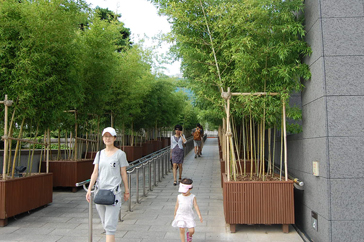 多様な食事を楽しめるフードコートやレストラン、屋外の景色が楽しめるカフェ、多彩な公演が行われる劇場“龍”、図書館、ミュージアムショップ、コンビニエンスストアなどが整っている。