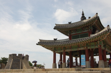 当時最高の実学【現実生活に役立つ実用的な学問】者たちが集まり、東洋と西洋の軍事施設理論を盛り込んで科学的に設計された韓国初のレンガで造られた近代的な城であり、全長5.7kmという‘万里の長城’のような巨大な城郭とその要所要所に門、砲台、やぐら、兵士の休憩所や軍事指揮所、訓練所などが東西南北に整然と組み込まれている。10年はかかると見られていたこの巨大な計画都市をわずか3年足らずで築き上げた影には、丁若鏞(チョン・ヤギョン)をはじめとする実学者たちの存在が大きな力になったといえる。当時の工事記録も完全な形で現存しており、建築史的にも高い価値を有する城郭として、1997年にはユネスコ世界文化遺産に登録された。
