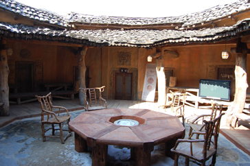 コルム村内には「太王四神記」の劇中、タムドク(ペ・ヨンジュン)とその仲間たちが会議を行った8角のテーブルがあり、その横には実際にヨン様が座ったイスがある。