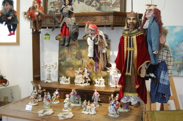 スタジオの建物内では、コミカルな似顔絵を描いてもらえたり、糸や紐をぶら下げて操作する人形劇・マリオネットを実際に体験をすることもでき、人形と一緒に写真撮影も可能!