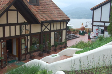 プチフランスの中には宿泊施設も充実しており、上の方にある建物はコンドミニアムタイプの宿泊棟となっている。全部で34部屋、収容人員は200人程度の宿泊棟は、それぞれ構造が異なった造りで、その一つとして同じものはないという特徴がある。一部屋だが2階建てのアットホームな雰囲気。また、森と川に囲まれ自然と調和した姿もより一層、フランス気分を感じさせてくれる。