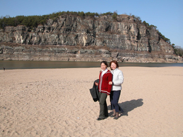 村と川を挟んだ向かい側にある奇岩絶壁は海抜64mで芙蓉台と呼ばれている。