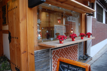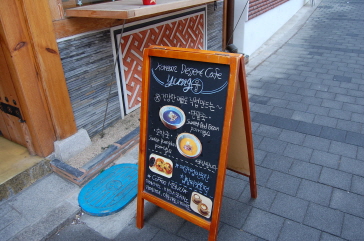 韓国の伝統家屋「韓屋」を改装して作られた、いわゆる“古民家カフェ”。韓国伝統茶からコーヒー、アイスクリームとメニューも豊富。おすすめはアイスクリーム&ワッフルのセット。店内には小さなテーブルがいくつもあるので一人でも気軽に訪れることができる。