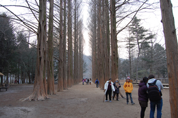面積46万坪、周り約5kmに至る南怡島には『冬のソナタ』でユジン(チェ・ジウ)とチュンサン(ペ・ヨンジュン)のファーストデート場所だった恋人の森、ファーストキスの場所だったベンチがあり、ドラマの感動と余韻が島のあちこちにそのまま残っている。特にエキゾチックな風景を作り出している美しいメタセコイヤの並木道は、南怡島の中でイチオシのスポット!