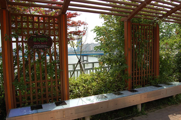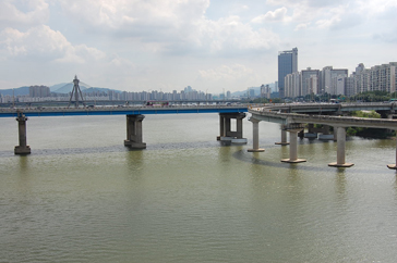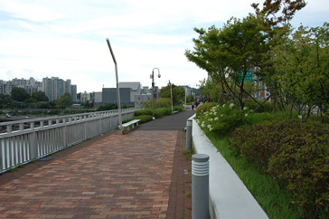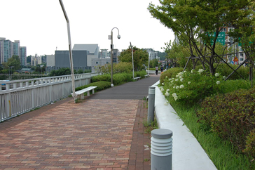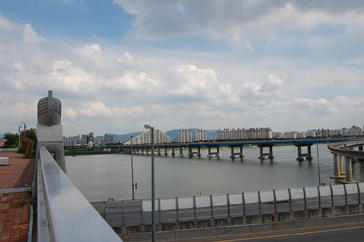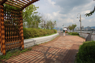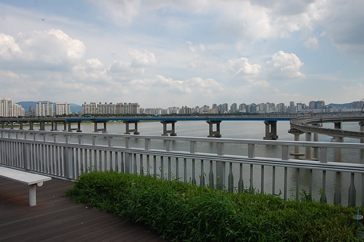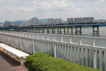 広津橋は漢江に架かる橋の中で唯一歩いて渡れる橋として、歩行者用の道がとても広く橋の上が遊歩道のようになっている。また、きれいに整備された花壇やオシャレなデザインのベンチなどもあり、散策途中の休憩場所にもなっている。
