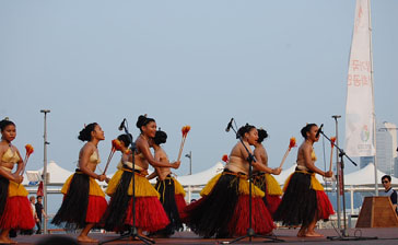 太陽広場では、参加国による面白い公演が行われています!この日は、民族衣装に身を包んだサウジアラビアの方による伝統的な踊りの公演が行われていました!初めて目にする、サウジアラビアの伝統的な踊りに音楽、独特の伝統衣装に万博観光客も釘付けになっていました!また、踊りを踊っているときの少女たちの楽しそう表情にも心を奪われました!展示館のデジタル映像も見ごたえがありますが、こういった参加国の伝統的な公演もなかなか見る機会がないので、足を止めて見入ってみるのも良いでしょう^^
