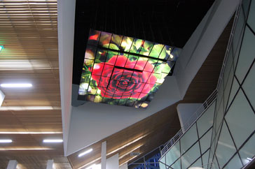 LG館の待ち時間も、平日の夜となると15~20分ほどです!人気の企業館も、少ない待ち時間で入場することが出来ました^^ LG館では、天井画面の不思議な映像パフォーマンスのほか、体験スペースなどもあります。