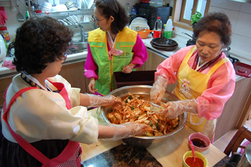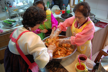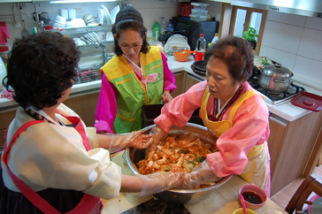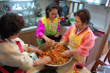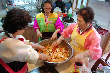 韓国の主婦の方々と一緒にキムチ作りを体験