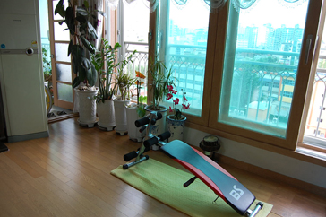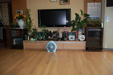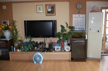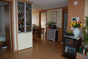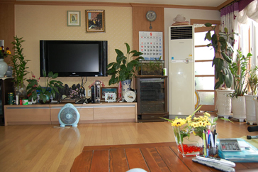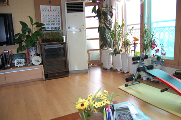 さて、それではチ・ウンスン先生のお宅をご紹介いたします!まず玄関を入ると、広々としたリビングが目に入ります。大きな窓があり、眺めもバツグン!韓国の一般家庭のお宅を訪問するのは始めての経験なので、失礼と知りつつもキョロキョロしてしまいました^^;大きなソファや統一感のある家具なども素敵でした。また、初めて訪問するにも関わらず、実家に帰ってきたかのようにホッと落ち着ける雰囲気のお宅でした。