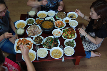 キムチ作りの体験が終わると、次は韓国一般家庭料理の昼食を頂きます^^どんな料理がいただけるのか、とっても楽しみです!さきほど作ったキムチも、頂くことができます。