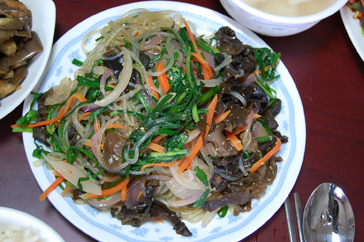 日本ではあまり馴染みのない手作りのどんぐり豆腐は、プルプルと柔らかくとっても美味しいかったです!日本でも人気のチャプチェは、ヘルシーな上に美味しくどんどんとはしが進みました^^;メインの보쌈(ボッサム=豚肉を野菜で包んで食べる料理)は、겉저리(コッジョリ)と呼ばれる作りたてのキムチとともに頂きます^^豚肉とキムチがよく合い、こちらも絶品!韓国の家庭料理は、日本の家庭料理よりもおかずの品数が多いような気がしました^^ご飯も美味しくぺろりと食べ切ってしまいました!