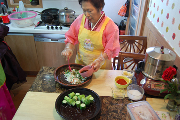 『一般家庭で行うキムチ作り体験ツアー!-第一弾-』では、韓国の一般家庭とキムチ作りを教えてくださるチ・ウンスン先生をご紹介し、『一般家庭で行うキムチ作り体験ツアー!-第二弾-』では、最もオーソドックスな白菜のキムチ作り体験をご紹介いたしました^^さて、『一般家庭で行うキムチ作り体験ツアー!-第三弾-』では、日本人にも人気のきゅうりのキムチ作りを体験し、韓国一般家庭料理の食事を頂きます!一般家庭の食事は、食堂で食べる料理とどのような違いがあるのでしょうか?期待が高まります!!