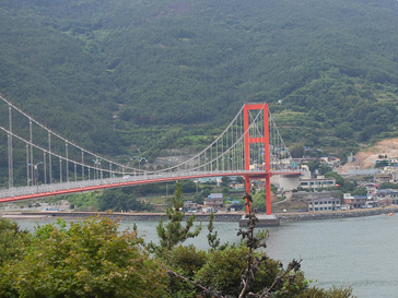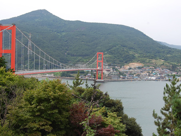 イ・スンシン大橋は、光陽(クァンヤン)と麗水(ヨス)を繋ぐ長さ2260m、幅25.7m(往復4車線)の大橋として2012年末開通予定です。現在まで完成された吊り橋としては、韓国国内で最も長く、日本の明石海峡大橋の1990m、中国の舟山西候門大橋1650m、デンマークのグレートベルト・イースト橋につづき、世界でも4番目の長さのつり橋となります。