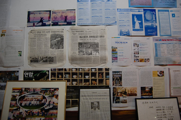 ヘオルム芸術村の建物の1階は、民俗資料展示館と廊下展示館、追憶の空間となっています。民族資料展示館には、多様な民族品が展示されています。ここでは、作品を直接手で触れることが出来、その時代の生活史を知ることが可能です。廊下展示館には、1988年ソウルオリンピックに関する資料が展示されています。追憶の空間は、ムルゴン小学校の教室が再現されています。